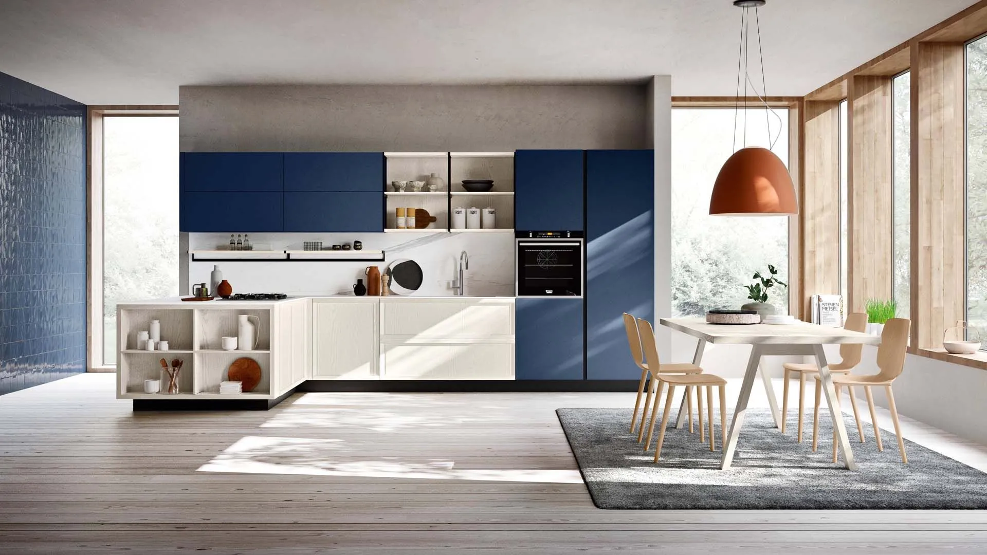 Le calde atmosfere della tradizione, sottolineate dai volumi e dall'anta dogata, si mixano nella cucina Sveva a soluzioni funzionali contemporanee.
