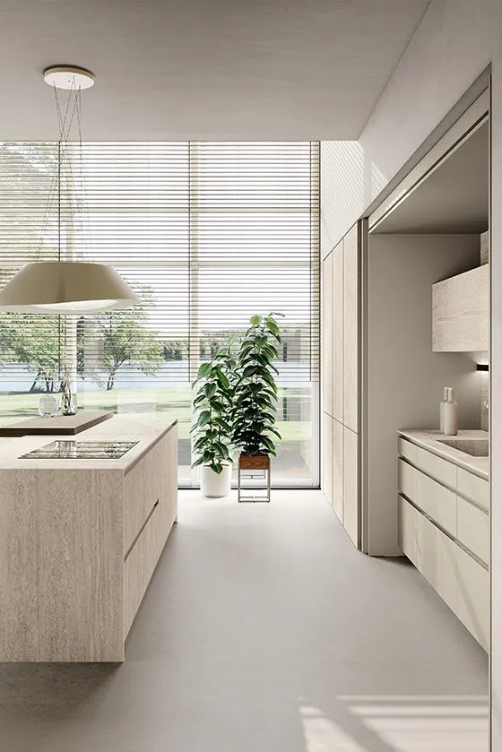 La carica innovativa e la potenza espressiva della cucina Aliant di Stosa sono il risultato di progetti curati in ogni dettaglio, ma anche dell’abbinamento fra materiali di alta qualità. Che sembrano quasi amalgamarsi per dar vita a un’armonia perfetta. Ci riferiamo al vetro, trasparente oppure opaco, disponibile in diverse colorazioni ma sempre ambasciatore di purezza e leggerezza, e all’HPL, cioè il laminato di ultima generazione, resistente alle alte temperature, durevole e impermeabile. Un ulteriore tocco di classe arriva dalla pietra Neolight, utilizzata per top e frontali.